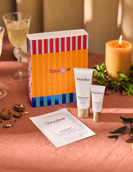 Coffret Essential Shock Intense Cream, creme reafirmante. Creme facial com poder reafirmante e efeito antirrugas para minimizar os sinais de envelhecimento e nutrir a nossa pele, corrigindo a sua secura.