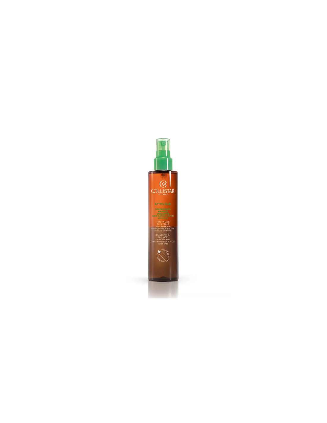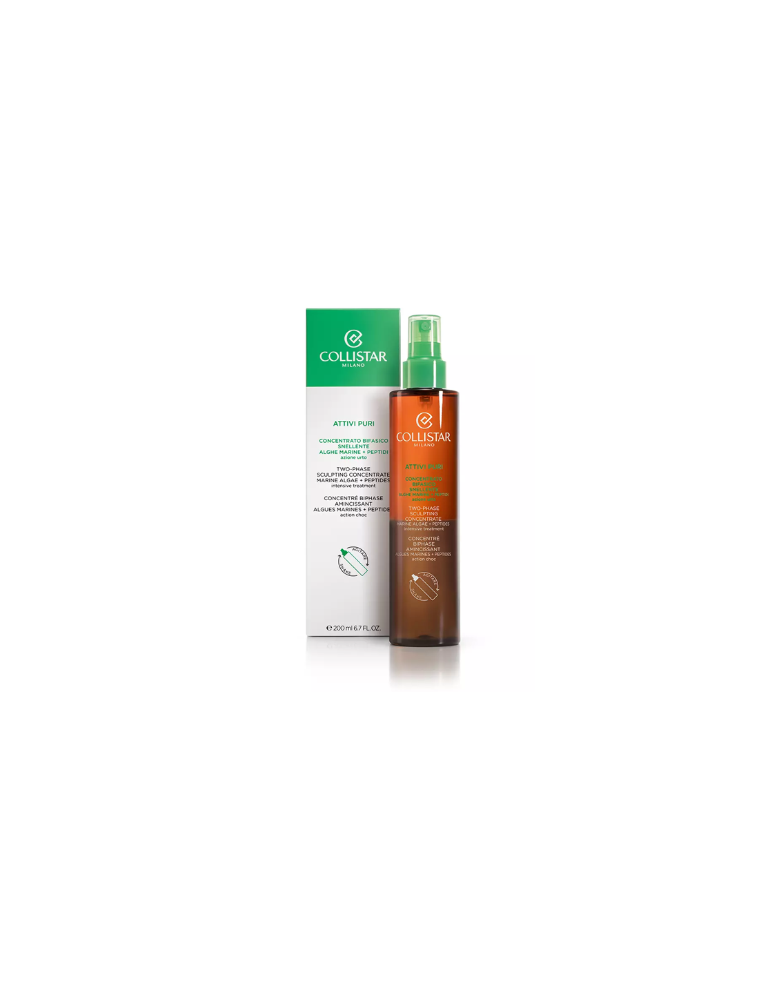 COLLISTARPURE ACTIVES TWO-PHASE SCULPTING CONCENTRATE (ALGAS MARINHAS + PEPTÍDEOS) Ingredientes ativos preciosos reunidos numa formula bifásica que age como um tratamento de choque para os depósitos de gordura localizada.